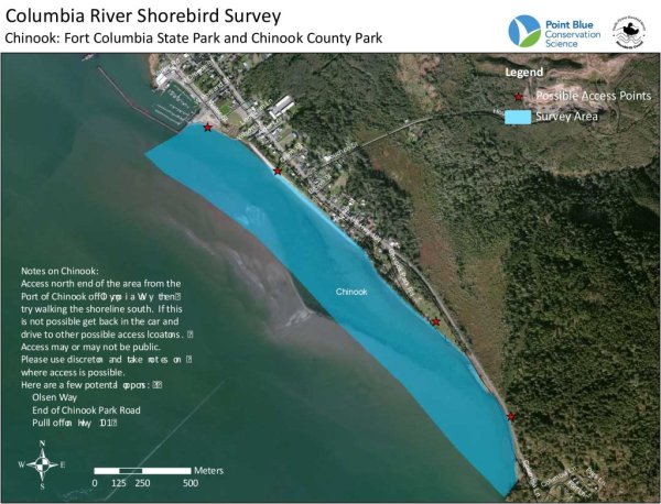 De dag begon met een balmy weer, ideaal voor het observeren van vogels. Samen met mijn collega Susan Stauffer telden we vogels in de Chinook kustregio en langs de Stringtown Road. Helaas was het moeilijk om veel vogels te spotten, vooral omdat een zeearend over het gebied patrouilleerde. Hierdoor waren de scholeksters en andere vogels op hun hoede en hielden ze zich verborgen.